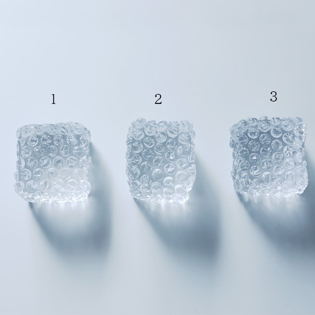 プチプチ特有の空気のかたまりや包んだ時の折れ目、緩やかに描かれるカーブまで