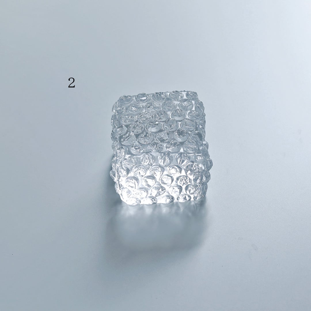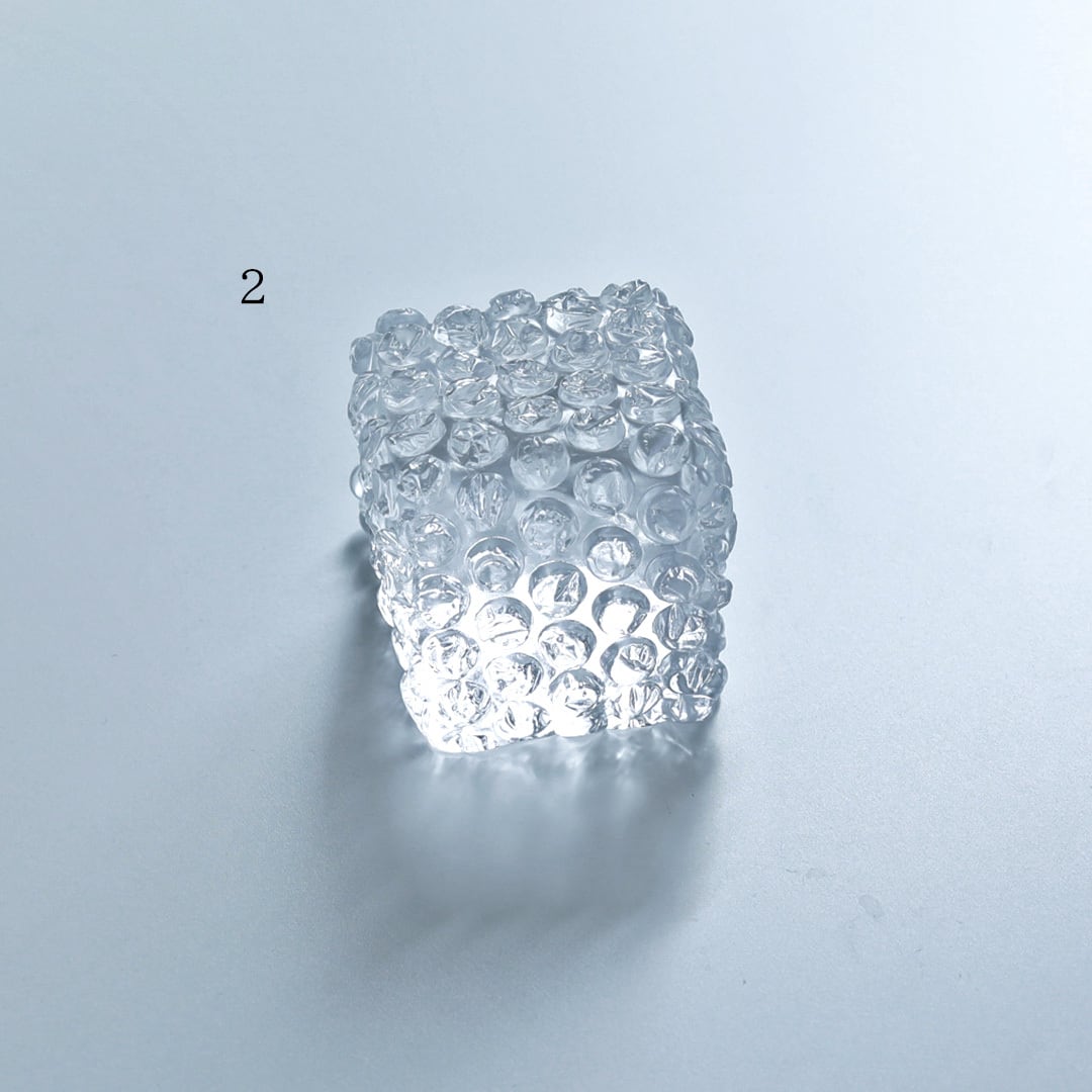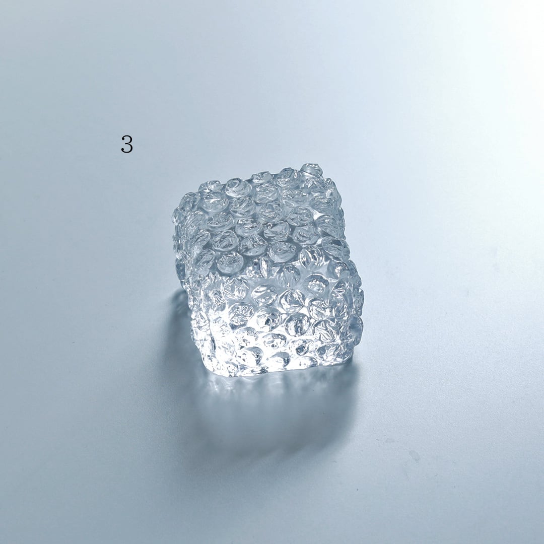 緩衝材である「プチプチ®」をガラスにしたオブジェ作品。