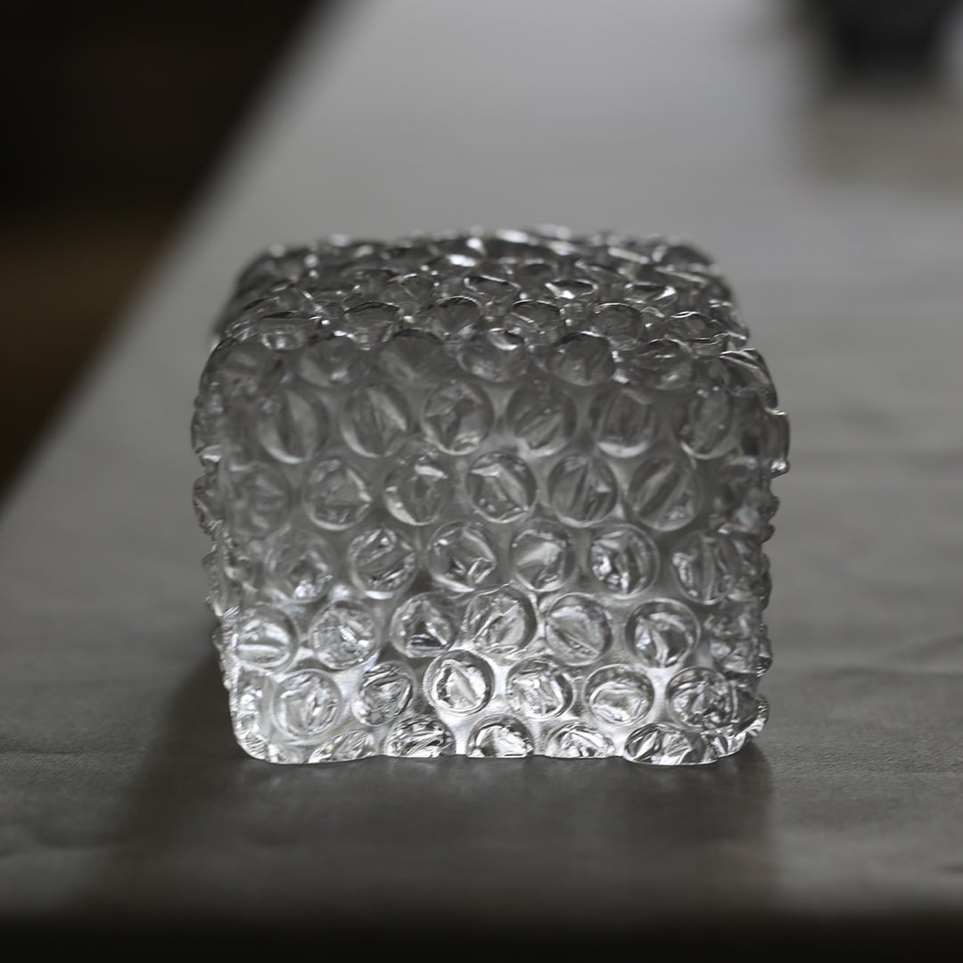 緩衝材である「プチプチ®」をガラスにしたオブジェ作品。