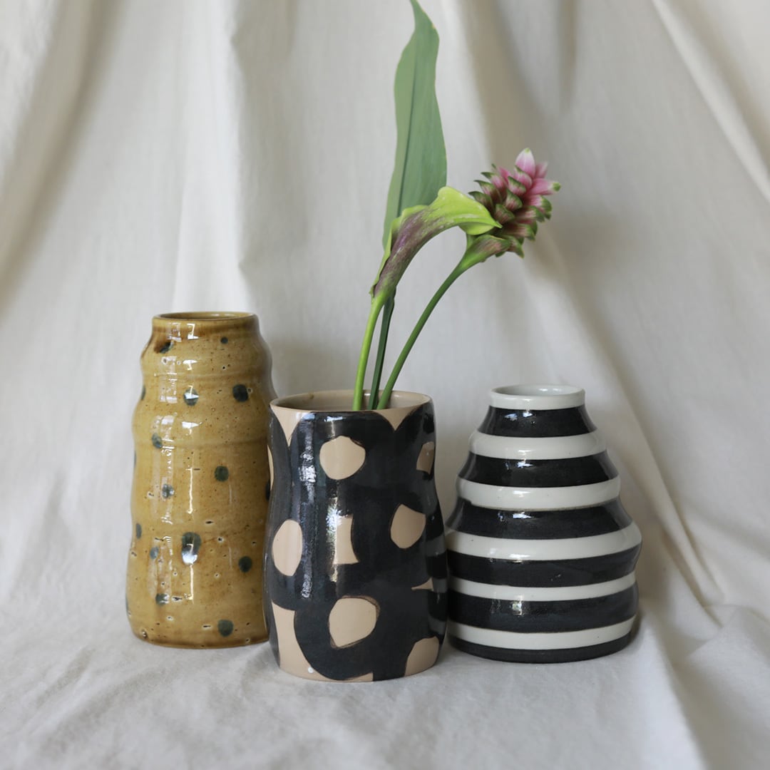CANASA (カナサ) フラワーベース 鉄絵 [黄釉青ドット] ⓵ 1.2