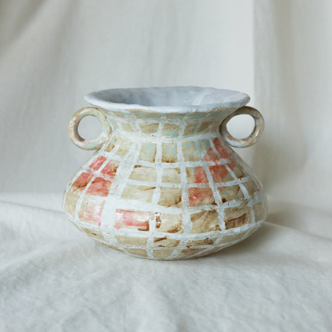 プリミティブな形状を支持体として釉薬や下絵具を用いて描画を行う。