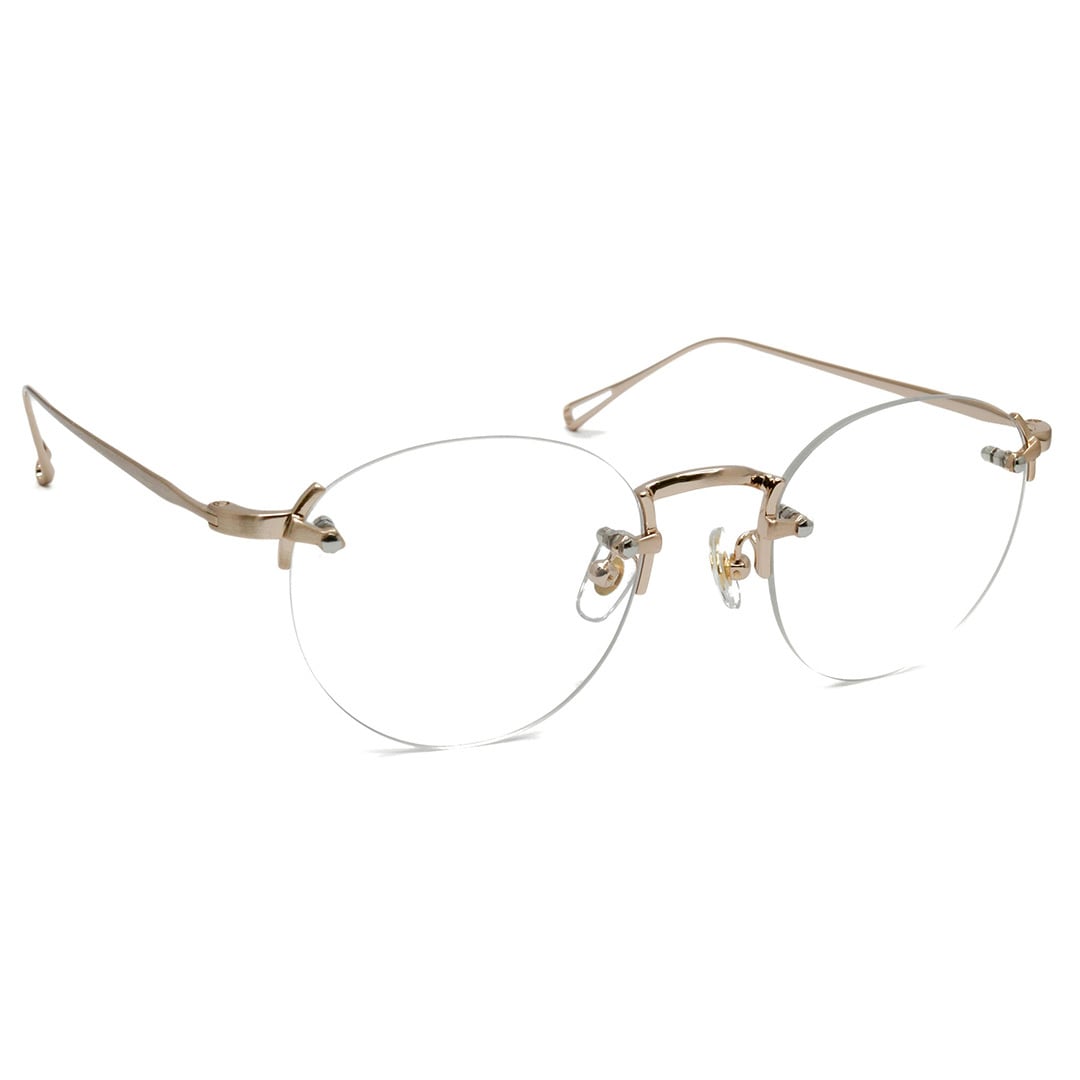 クラシックなレンズシェイプのリムレスフレームに