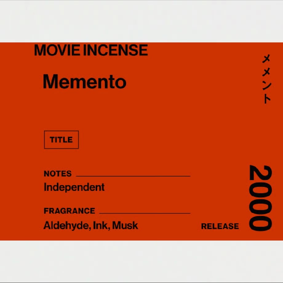 レナードの孤独で捻れた復讐劇と独特の映像展開をイメージしたフレグランス。タトゥーインク、冷たいポラロイド、モーテルの部屋、乾いた血、白いシャツ、こもった車内。