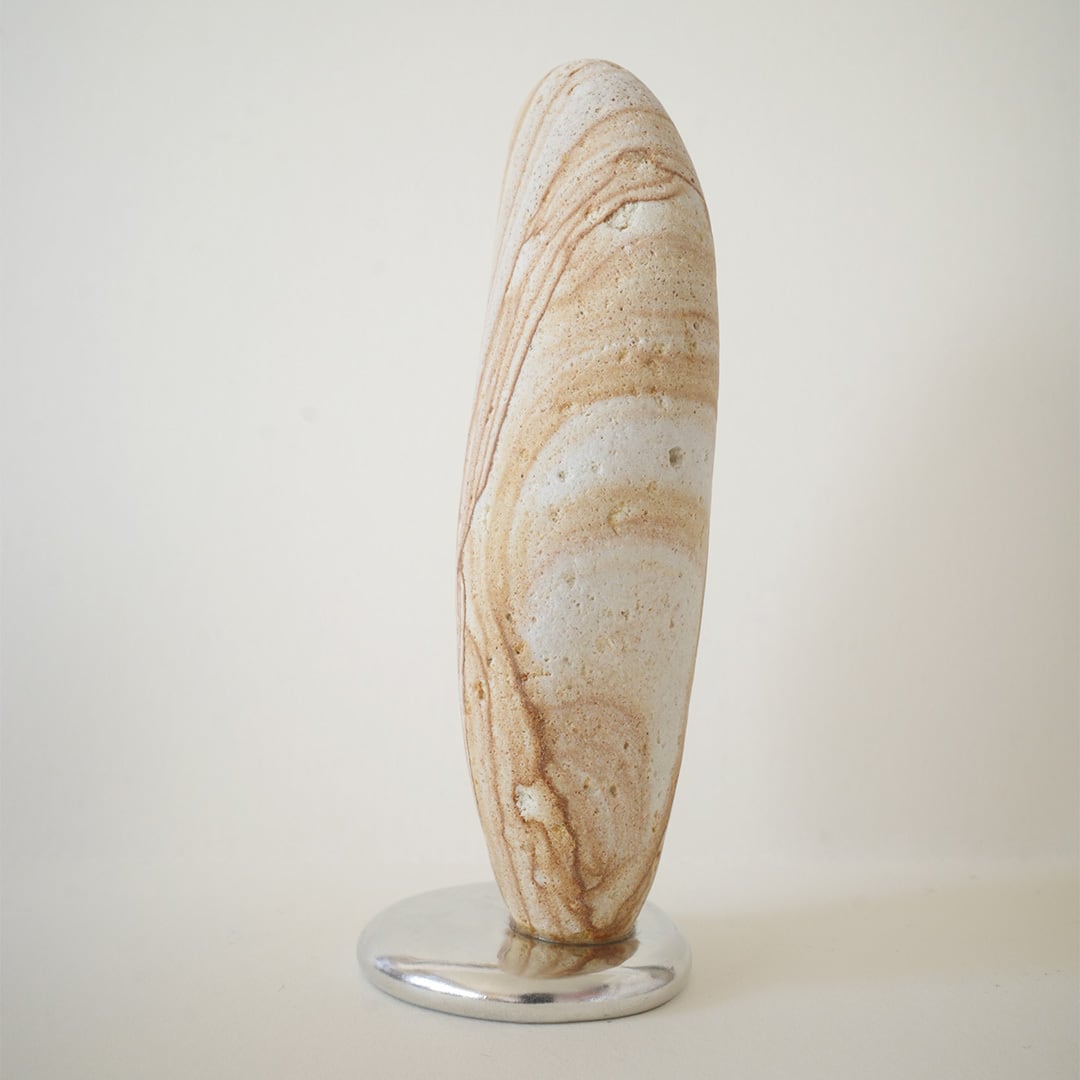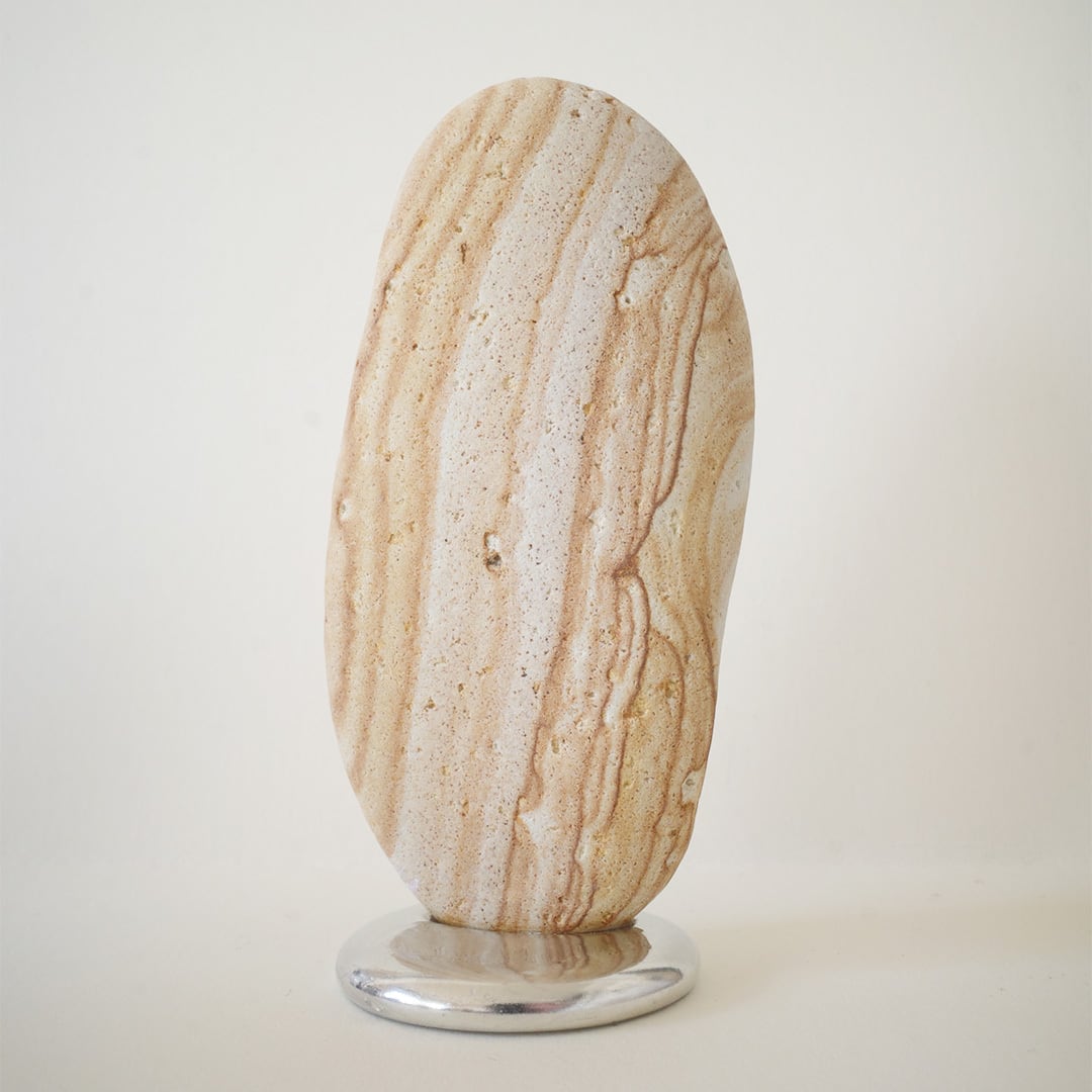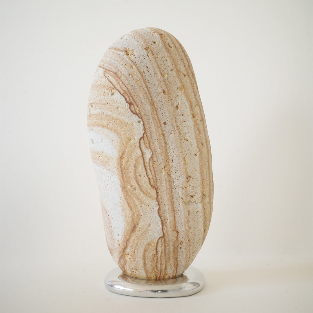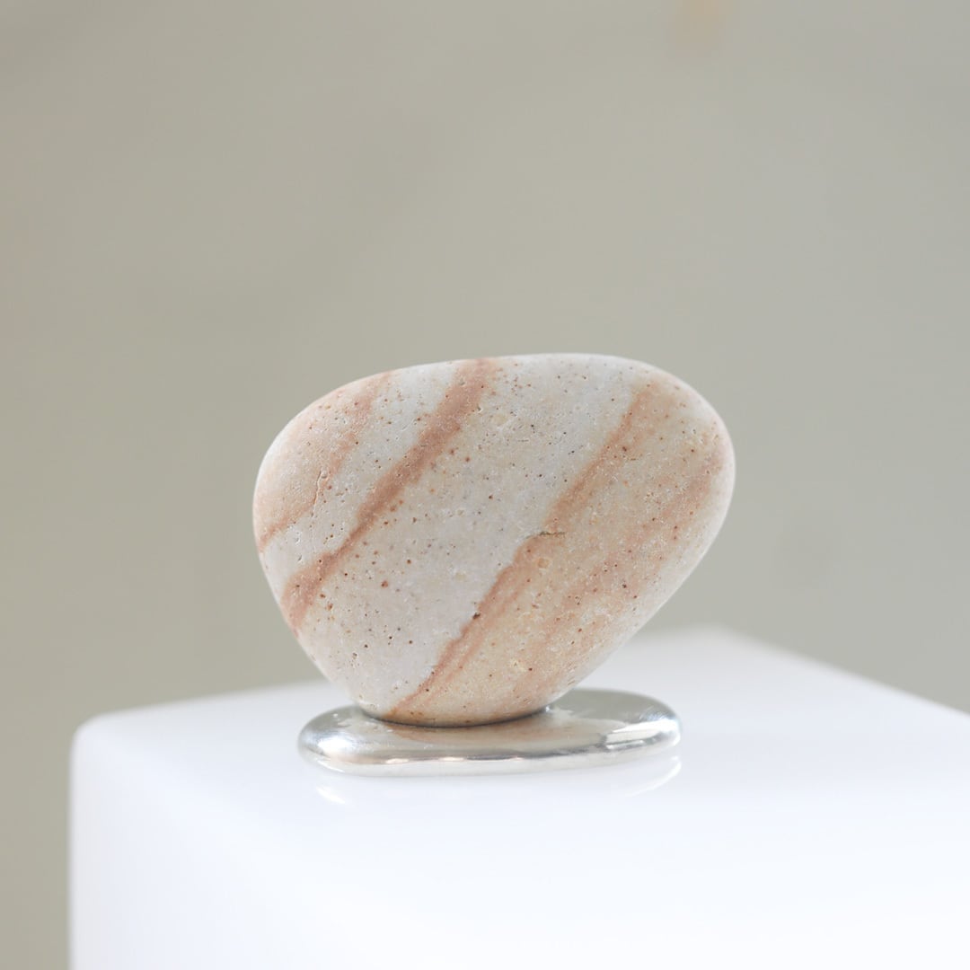 流動的な錫が特徴のオブジェ 「錫止石」