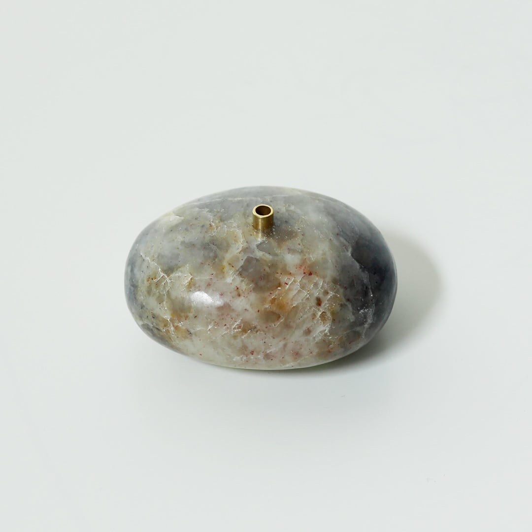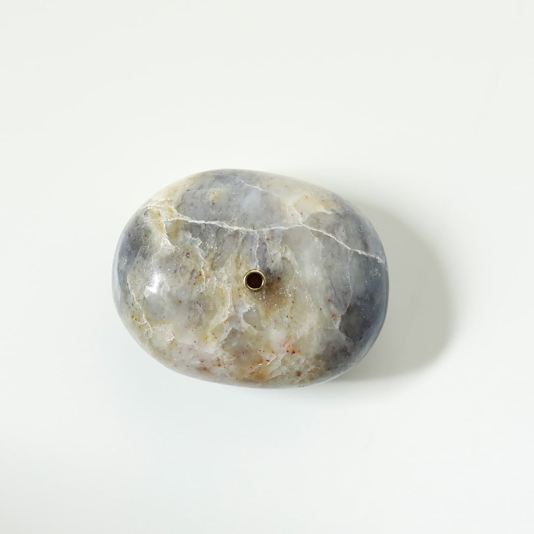 色とりどりの天然石のお香立て 天然石に穴開けて真鍮を組み合わせてインセンスホルダーにしています。