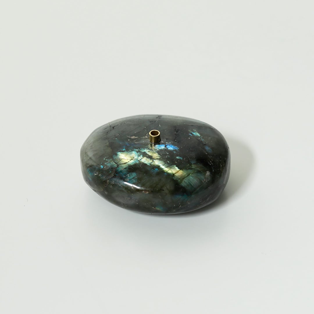 色とりどりの天然石のお香立て 天然石に穴開けて真鍮を組み合わせてインセンスホルダーにしています。