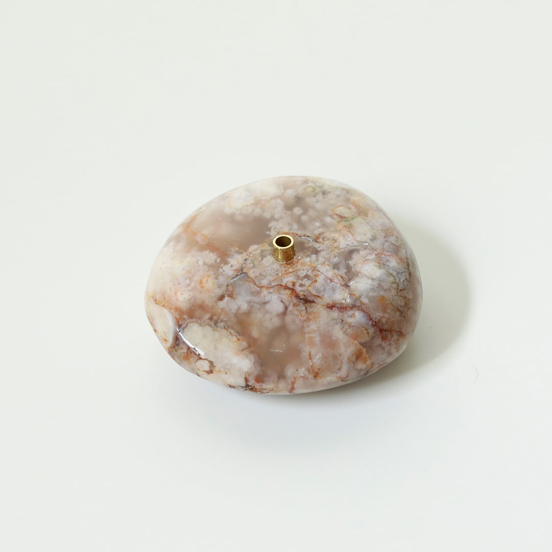 色とりどりの天然石のお香立て 天然石に穴開けて真鍮を組み合わせてインセンスホルダーにしています。