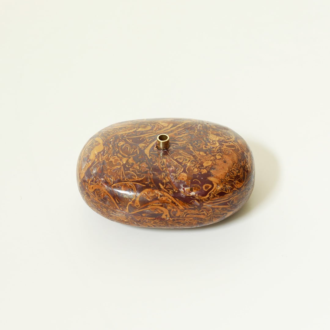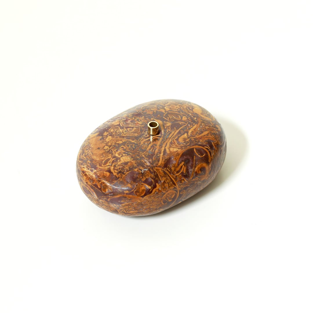 色とりどりの天然石のお香立て 天然石に穴開けて真鍮を組み合わせてインセンスホルダーにしています。