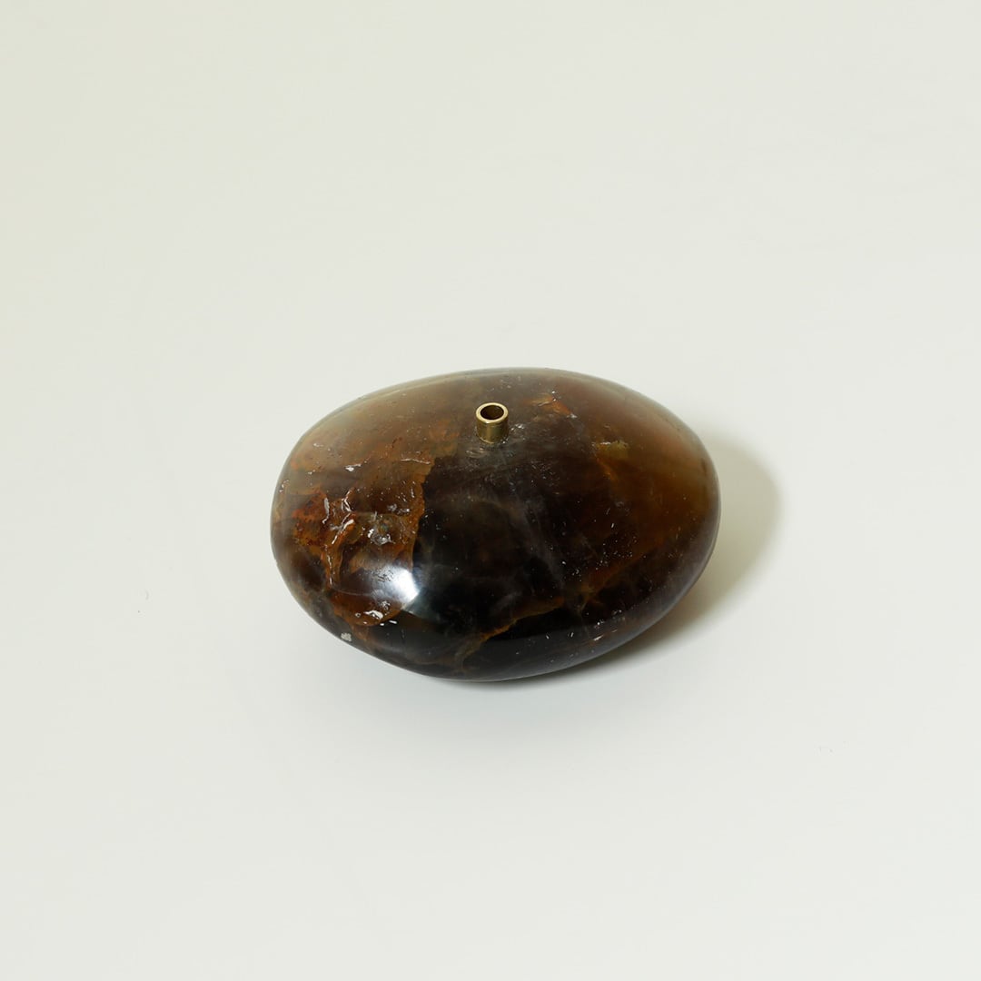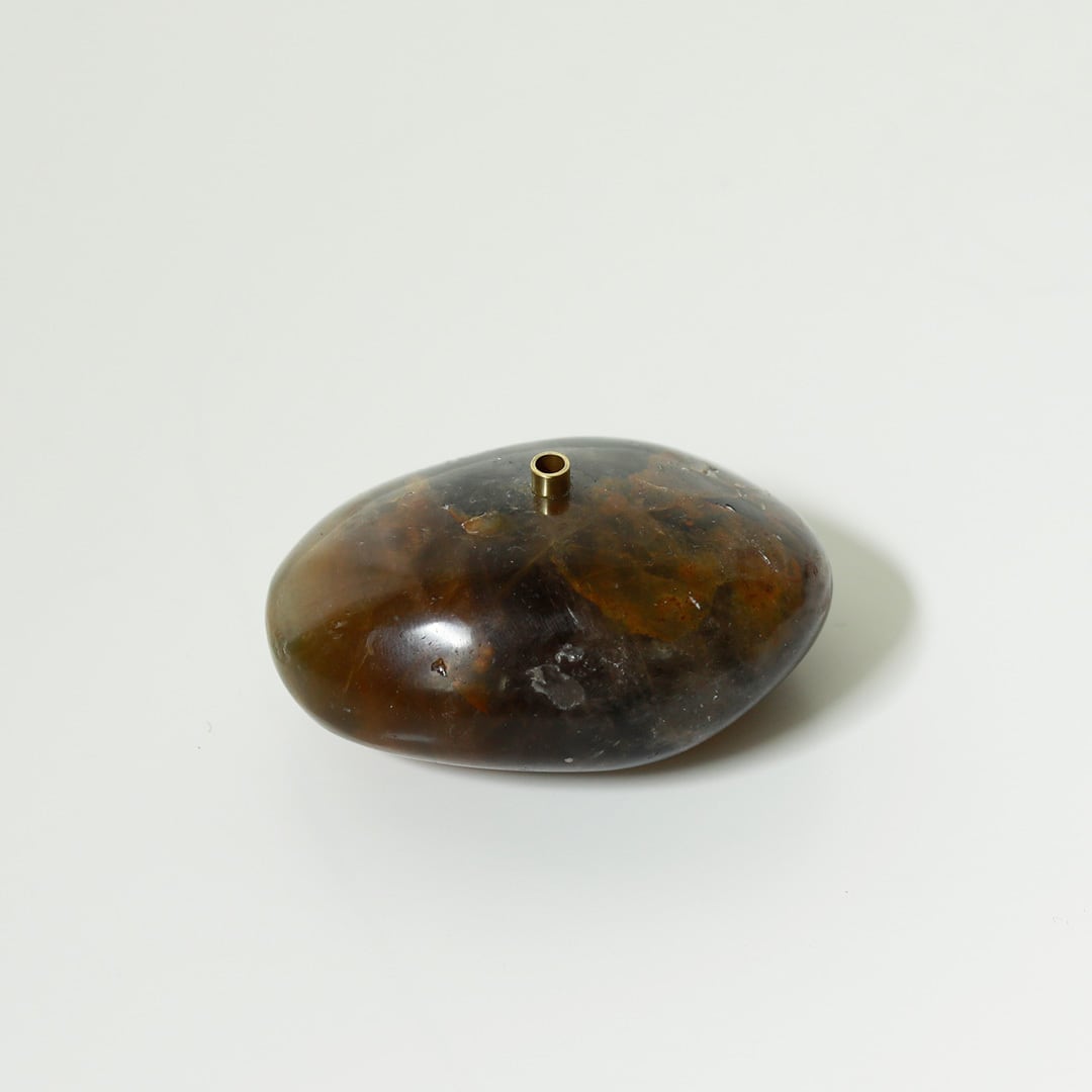 色とりどりの天然石のお香立て 天然石に穴開けて真鍮を組み合わせてインセンスホルダーにしています。