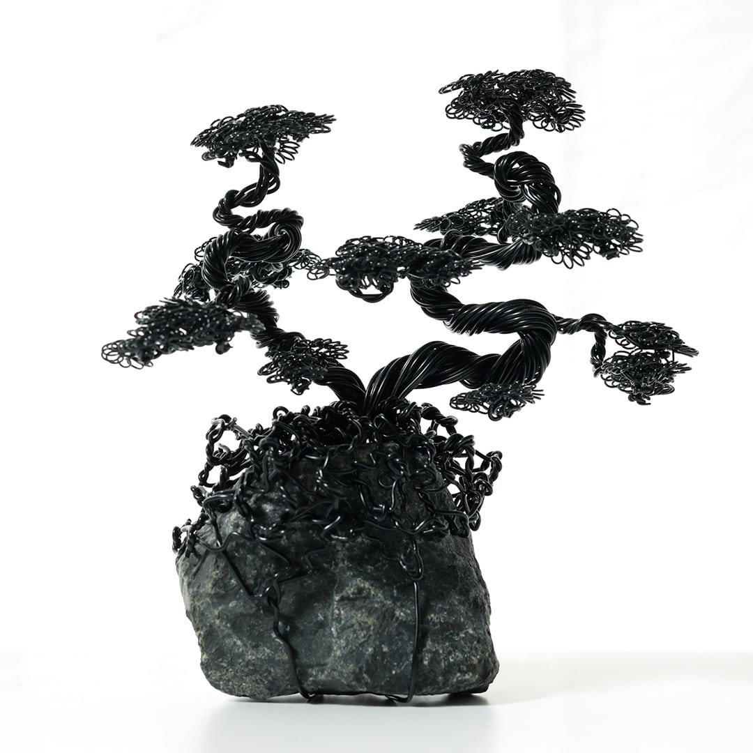 ツチンナカキは植木職人歴14年の傍ら、2021年盆栽をテーマとしたポップアップ活動を始める。23年盆栽の販売と別に盆栽をモチーフとしたオブジェクトを制作する。ワイヤー素材と自然石を組み付けた「Wirebonsai」を中心に、24年個展活動を開始。「枯れない盆栽object」を通し、トラッドとモダンとが交差した新たな価値観を表現している。