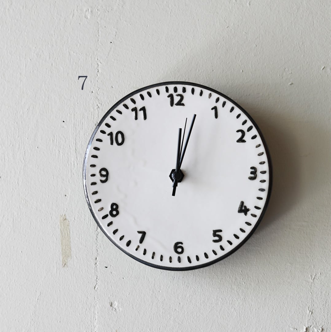 こちらは手書きで文字盤が描かれた磁器製の壁掛け時計。
