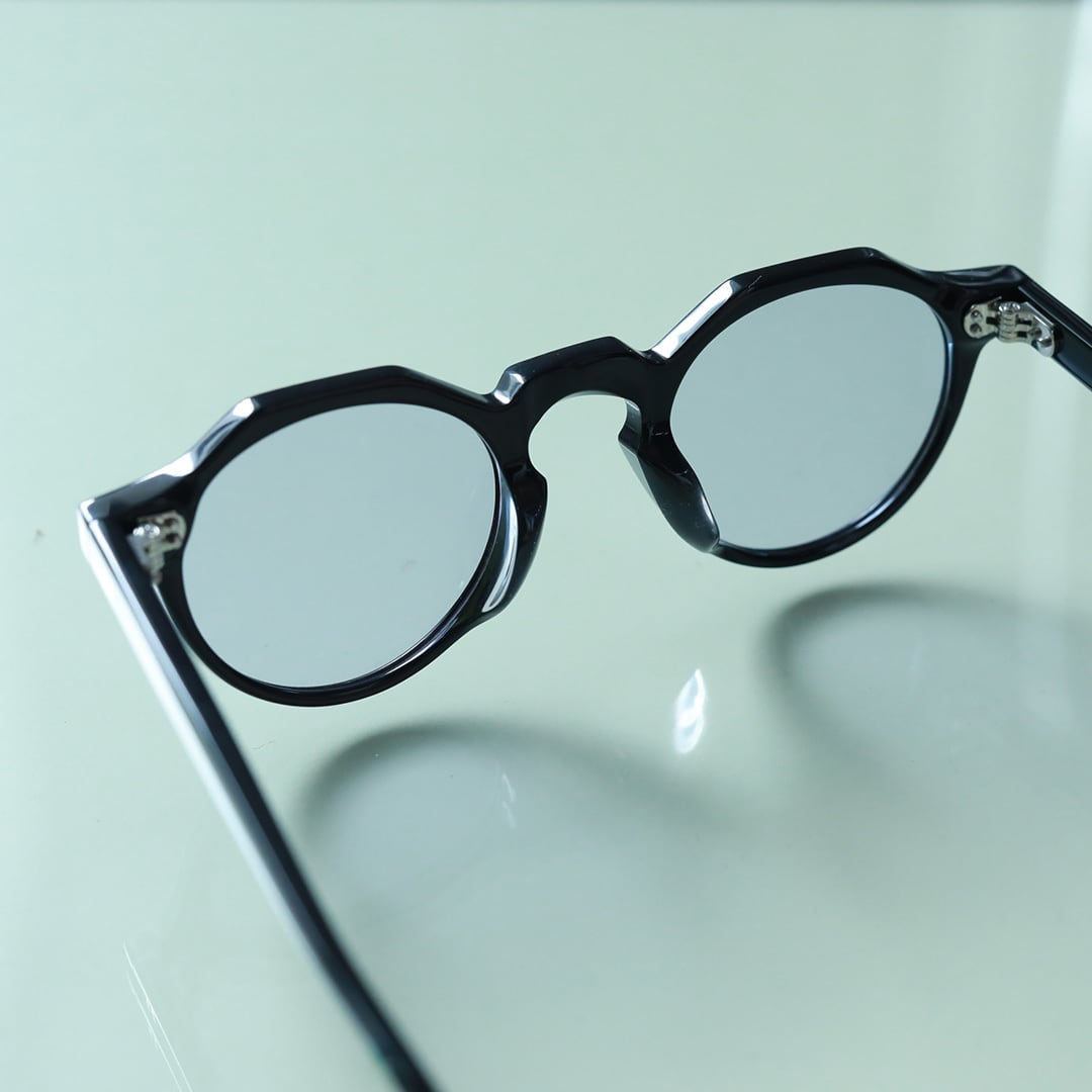 イタリアのマツケリー社による生地の使用、フレンチヴィンテージを彷彿とさせる厚みのあるヒンジパーツ、ヒレのようなテンプルエンドなど随所にヴィンテージを再構築をさせたデザインになっています。