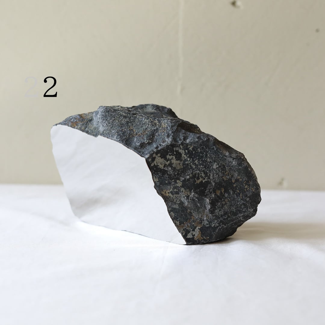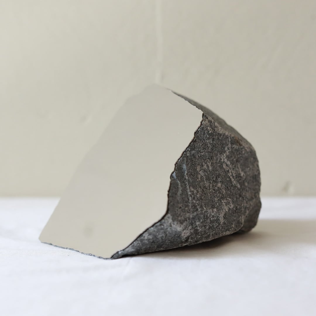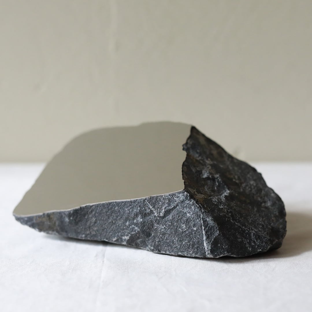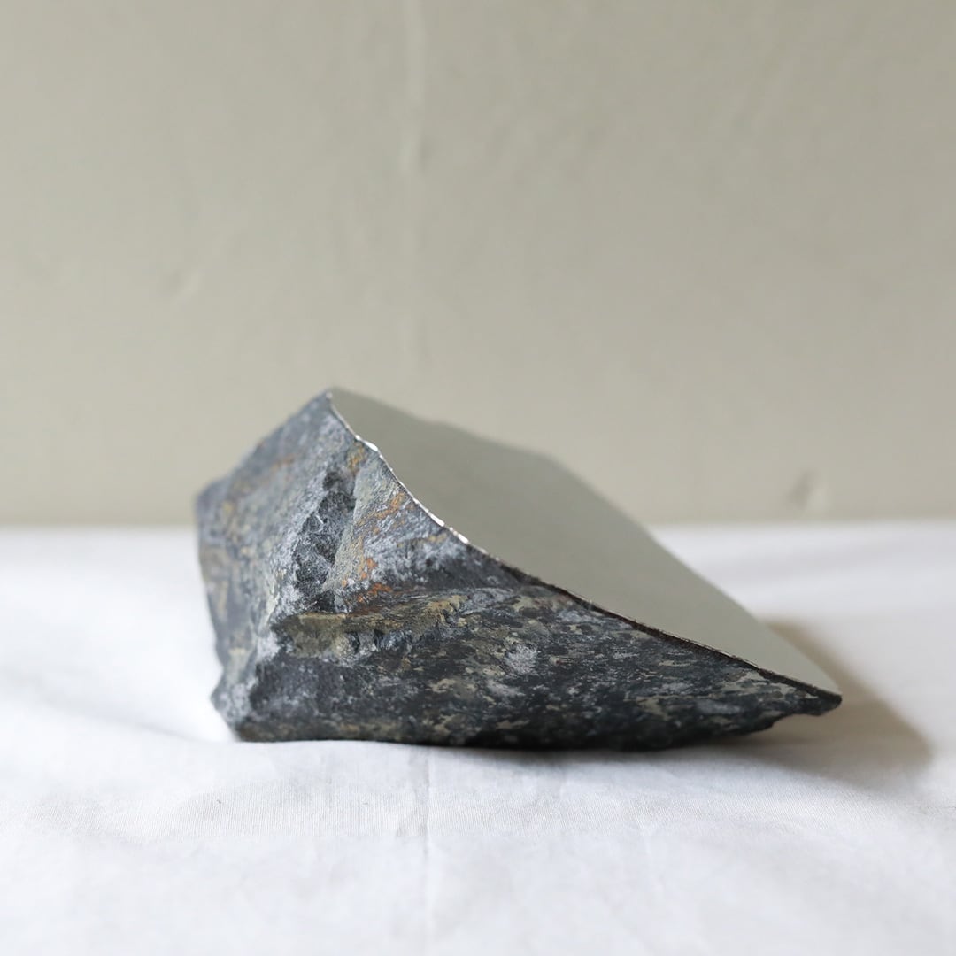 信州志賀石を斜めにカットし、その断面を鏡面磨きの